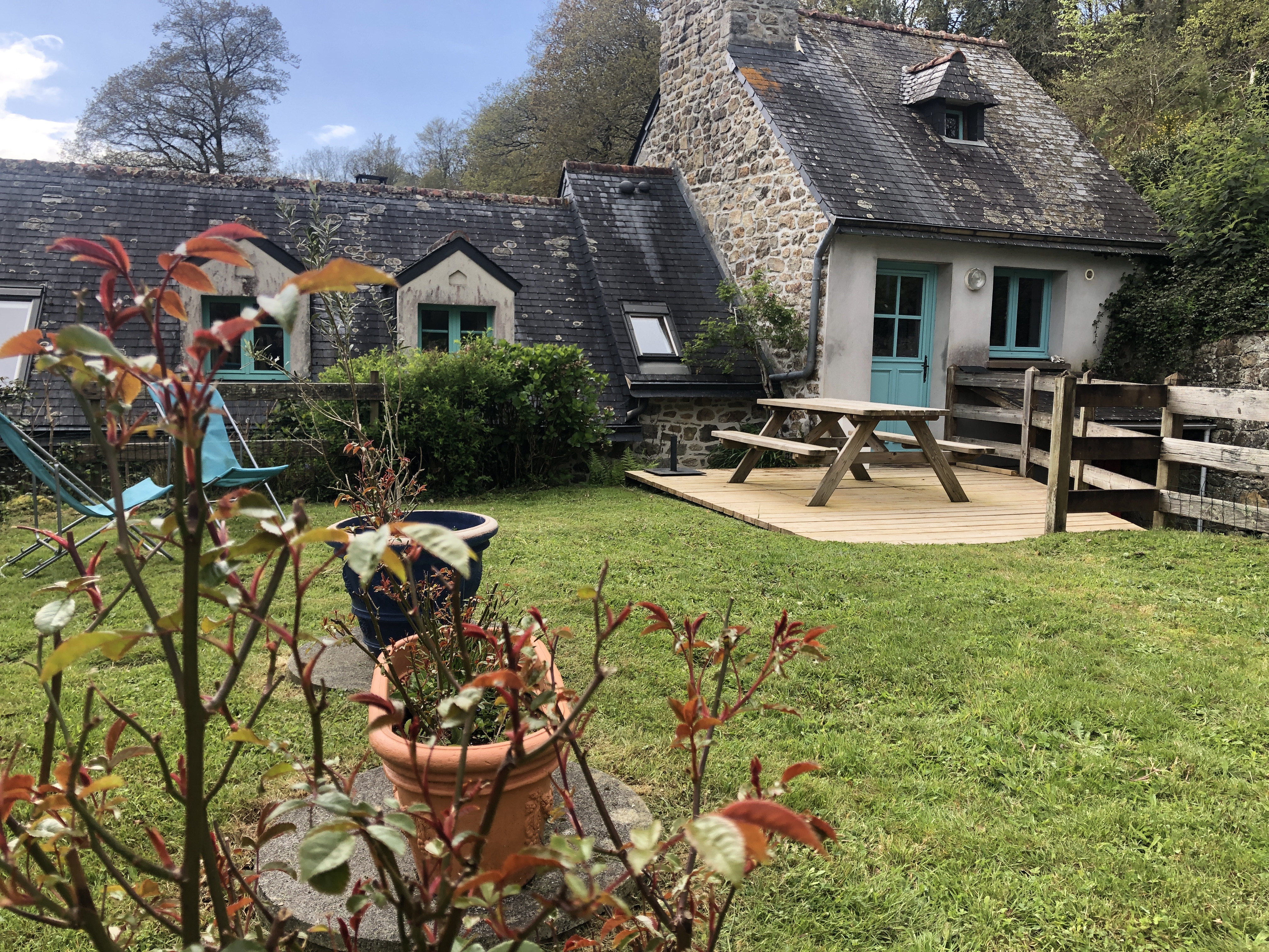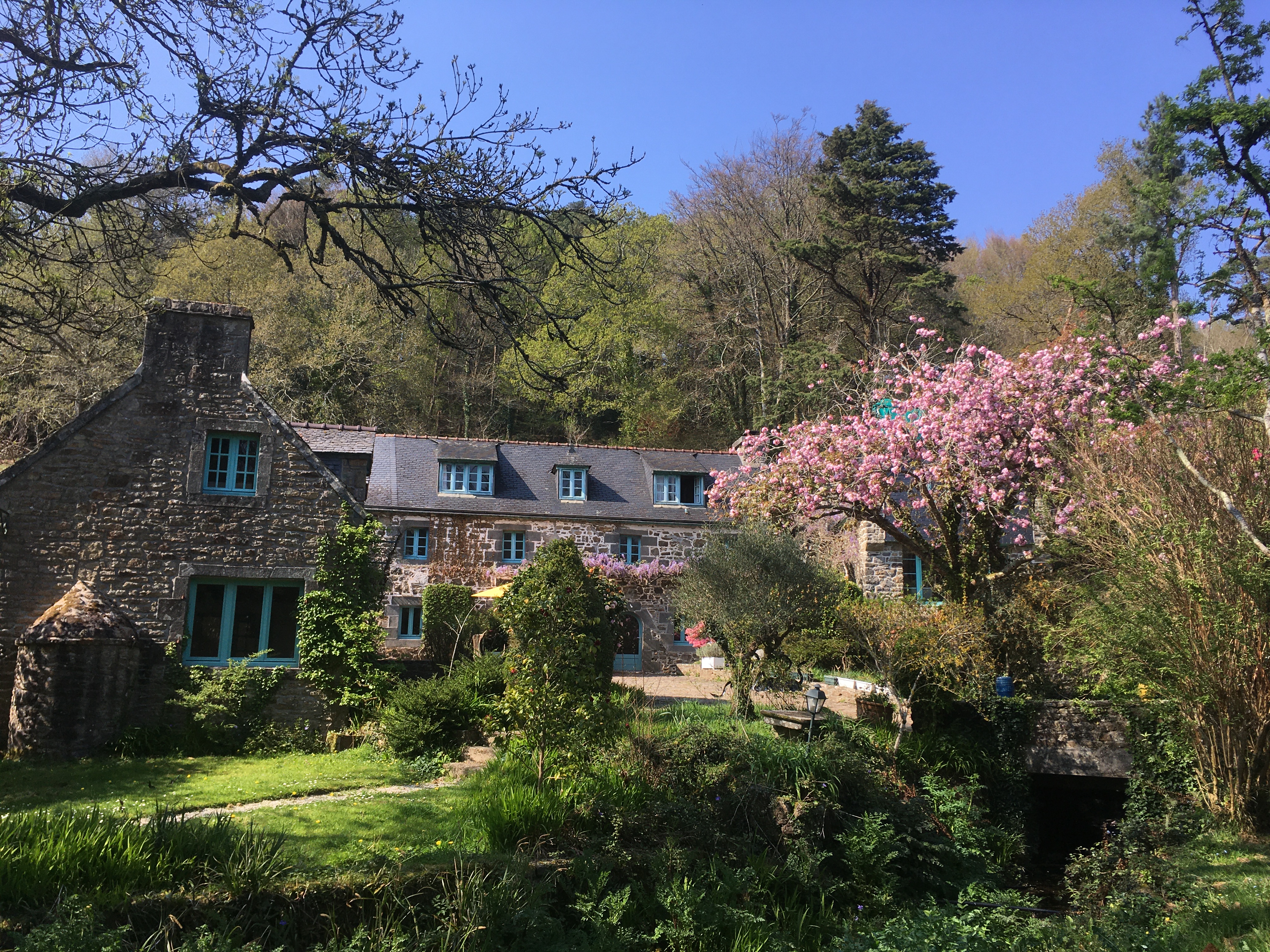 Le domaine du Moulin de Rossiou s’étend sur 22 hectares de jardin, prairies, étangs et bois. Niché au bord d’une rivière, le Camfrout, ce hameau se structure depuis des siècles autour du moulin et de son bief. Il se compose de plusieurs maisons individuelles que nous louons en gîtes pour des familles ou pour des groupes.