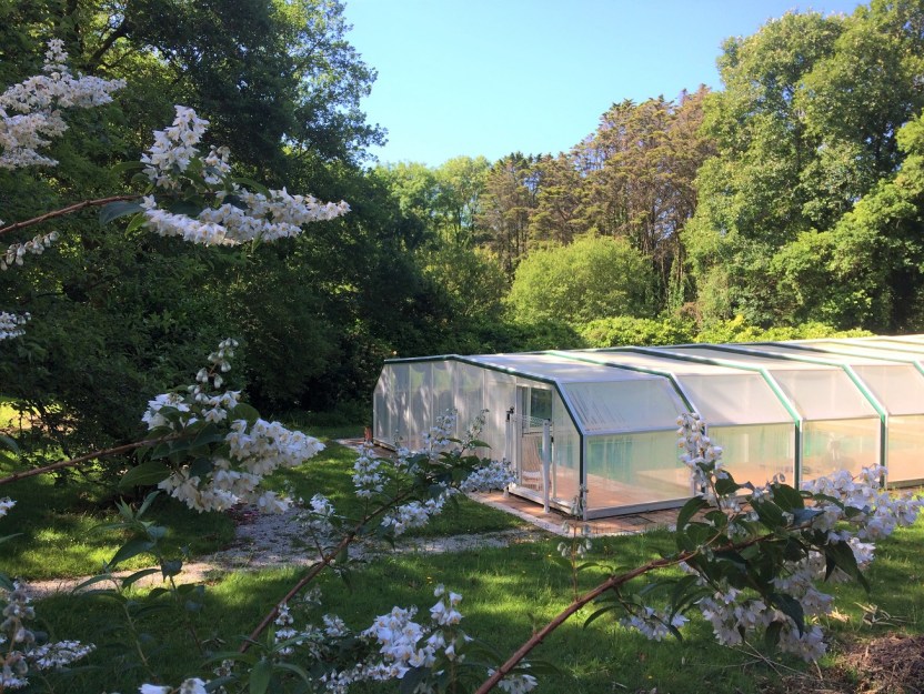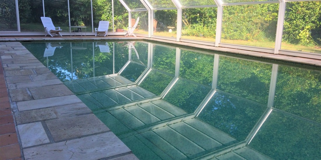 Mais attention, la piscine n’est pas chauffée : nous utilisons une grande structure construite comme une serre qui permet de chauffer l’eau jusque 26 degrés en été. Nous étudions actuellement des systèmes, peu gourmand en énergie pour chauffer l’eau pour qu’elle soit accessible une grande partie de l’année.