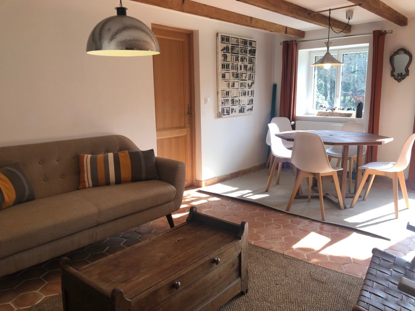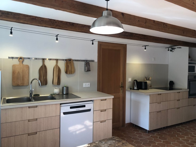 À l’intérieur, on retrouve ce qui fait l’esprit du Moulin : des espaces ouverts, une circulation simple, des matériaux bruts, choisis pour durer. La grande pièce à vivre est pensée pour rassembler : cuisiner pendant que d’autres dessinent, discuter autour d’un café, ouvrir les portes sur la terrasse dès qu’il fait beau ( ce qui arrive bien plus fréquemment que le dise les mauvaises langues !)