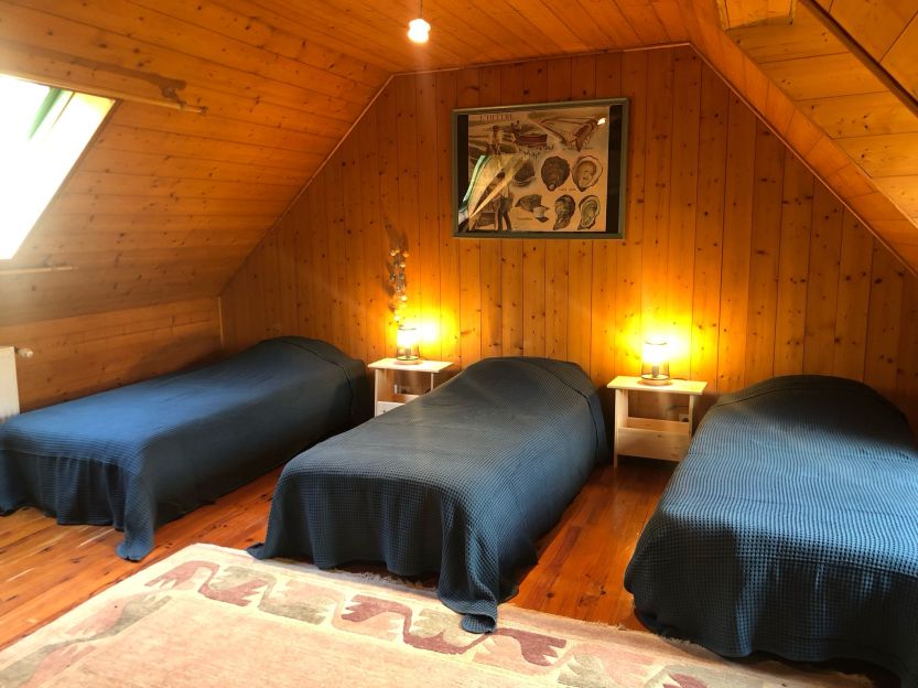 La maison peut accueillir jusqu’à huit personnes. Au rez-de-chaussée, une chambre double avec sa salle d’eau permet une installation facile. À l’étage, deux grandes chambres, une salle de bain supplémentaire, des vues dégagées sur le jardin et sur l’eau. Chaque détail a été pensé pour être pratique, confortable, sans prétention.